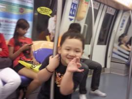 My youngest brother took it for fun and he is so CUTE ! lalala... 1st picture is at ToyRus and 2nd in the MRT ! i took just for fun loh